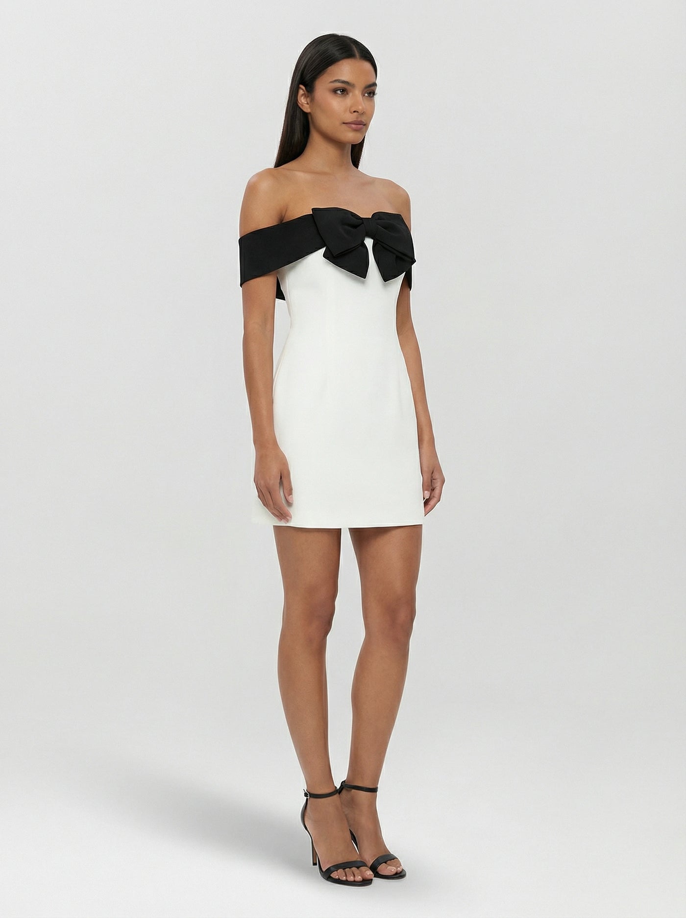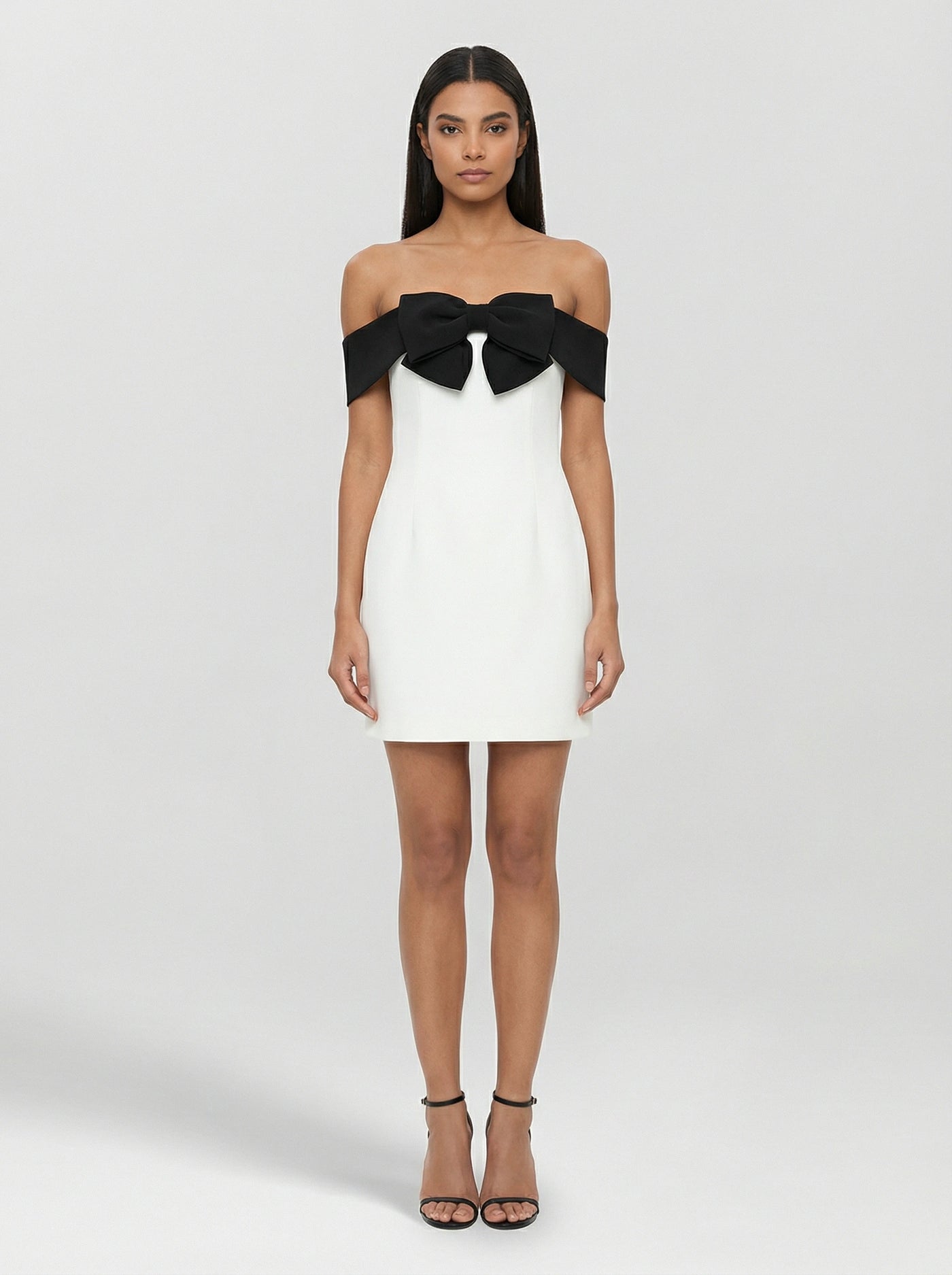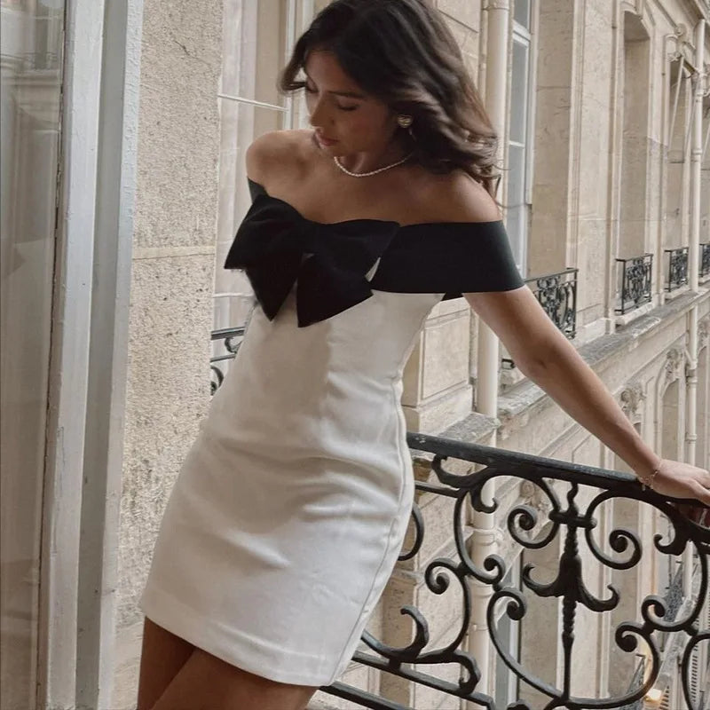 Vestido curto tomara que caia com modelagem ajustada ao corpo. Possui detalhe de laço contrastante no busto que traz destaque ao visual, com caimento reto e confortável. Leve elasticidade que acompanha a silhueta sem marcar em excesso. Ideal para eventos, jantares e ocasiões especiais durante o dia ou à noite.